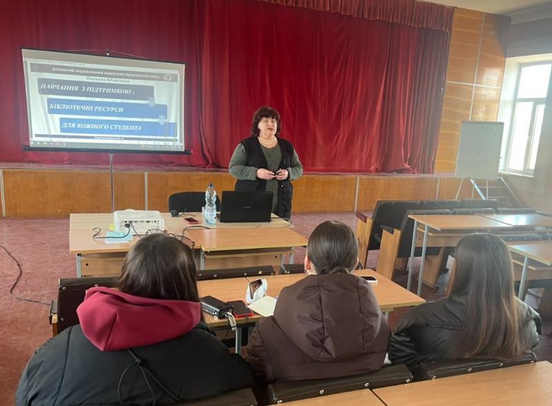 05.03.2026 року, у рамках дисципліни «Інформаційні технології в юридичній діяльності», для першокурсників груп В-Г юридичного факультету ОП D8 «Право» (викладач – доцент кафедри теорії, історії держави і права та філософії права Олена Письменна) директоркою наукової бібліотеки Тетяною Міщан проведено тематичну годину «Інформаційні ресурси і сервіси наукової бібліотеки Стусівського університету. Про бібліотеки і не тільки…».